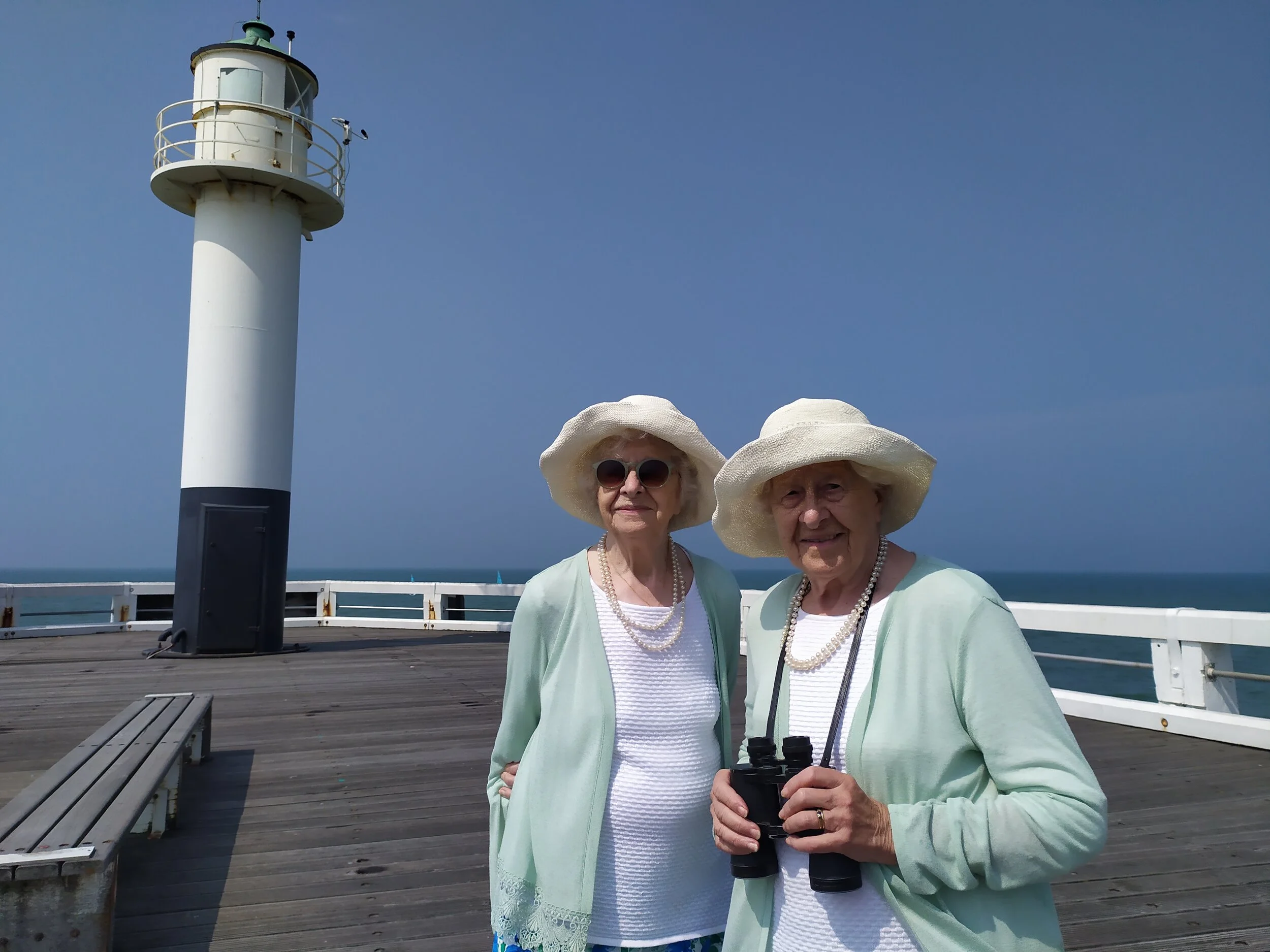 SC 1 - Pier Nieuwpoort: Molly en Theresa, een tweeling van 91 jaar verliest hun hoedjes.